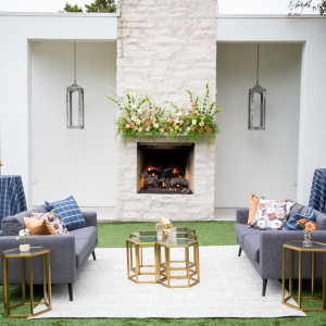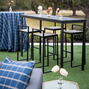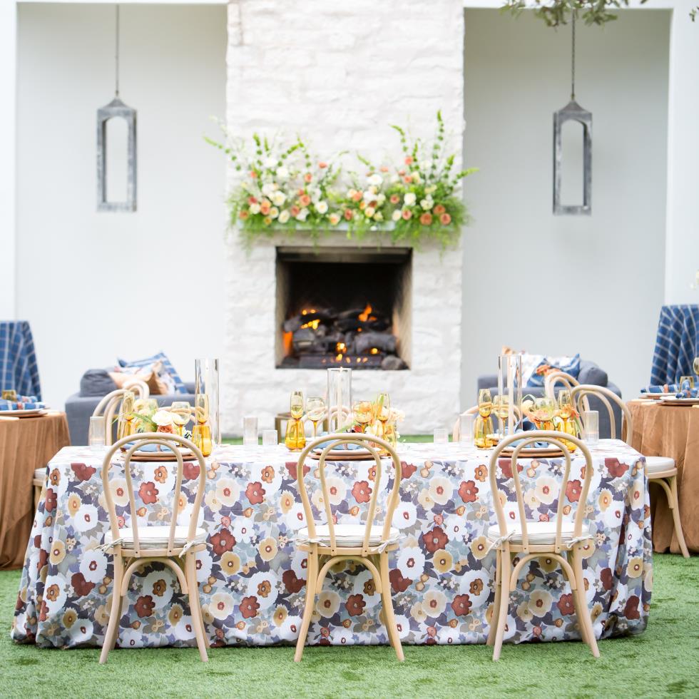 Channel timeless charm with wood bars, mid-century furnishings, and plaid linens that exude vintage sophistication. Communal tall cocktail tables invite lively mingling, while floral dining setups in warm, earthy hues set the stage for memorable outdoor celebrations.
