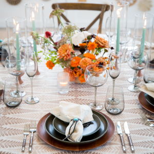 Bring warmth and character to your celebration with a design inspired by the rich hues of Tex-Mex culture. Forest green, rust and gray create a rich foundation, while textured linens accented with hints of turquoise add a touch of handcrafted charm.