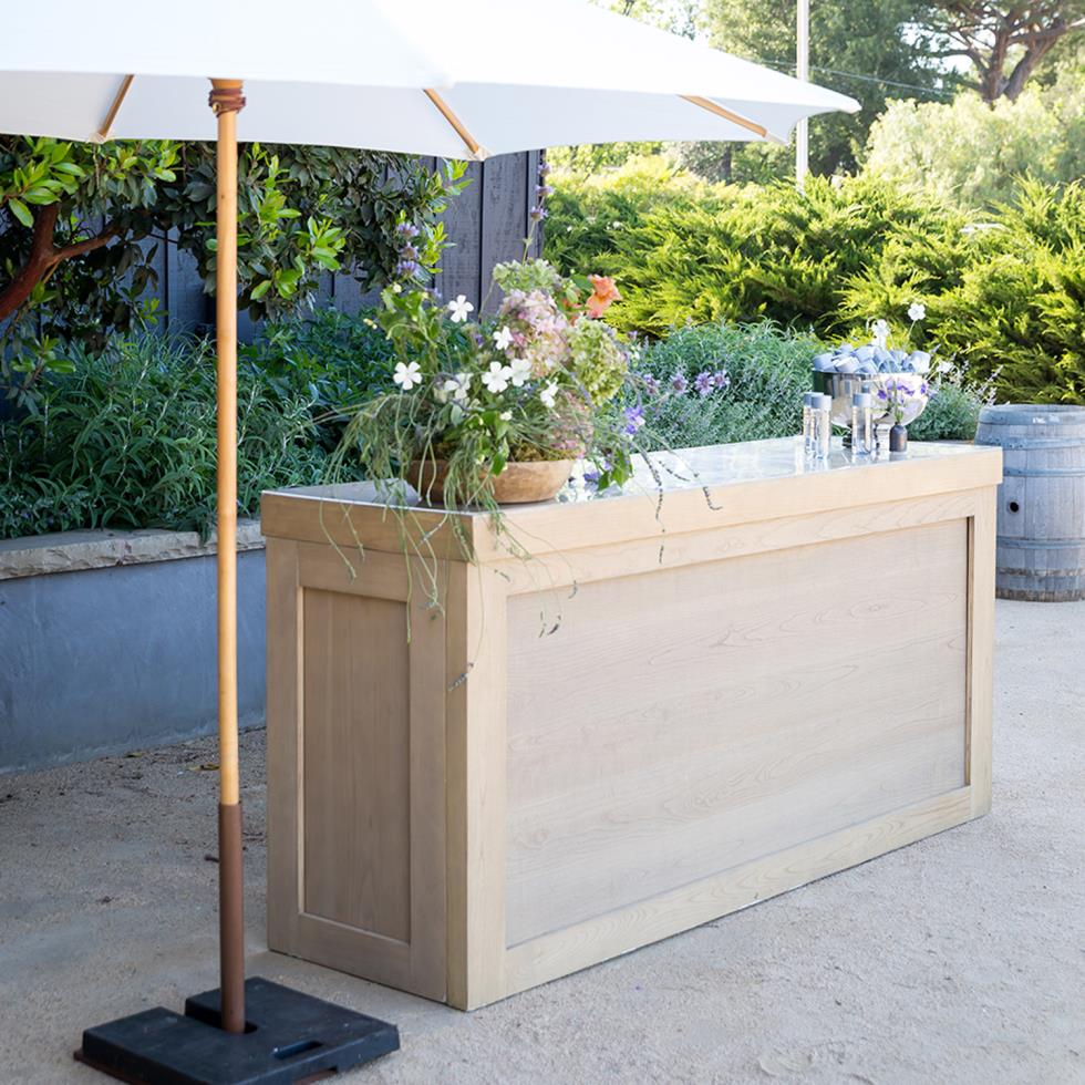 The Cambio bar embraces the surf and sand in a beautiful dirftwood tone. In spanish, Cambio means to alter or change which is exactly what these bar fronts and sides can do. With customization you can add your logo, let guests know your drink menu, or personalize for your special event. This Driftwood toned bar is rustic and elegant at the same time.