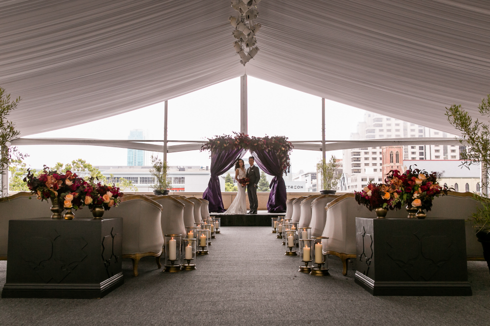This stunning wedding in the tented rooftop garden of the @stregissf takes glorious advantage of our Chateau lounges with just the right amount of violet...