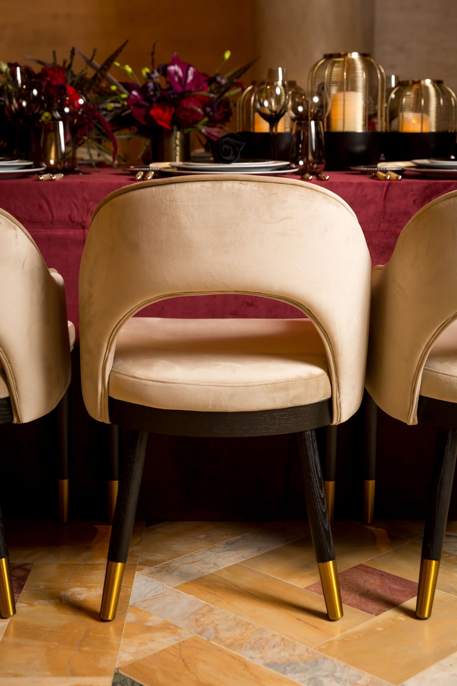 Take a seat in the elegant and comfortable Audrey Dining Chair. This posh chair possesses sumptuous taupe velvet that is the hallmark of opulence. Finished...