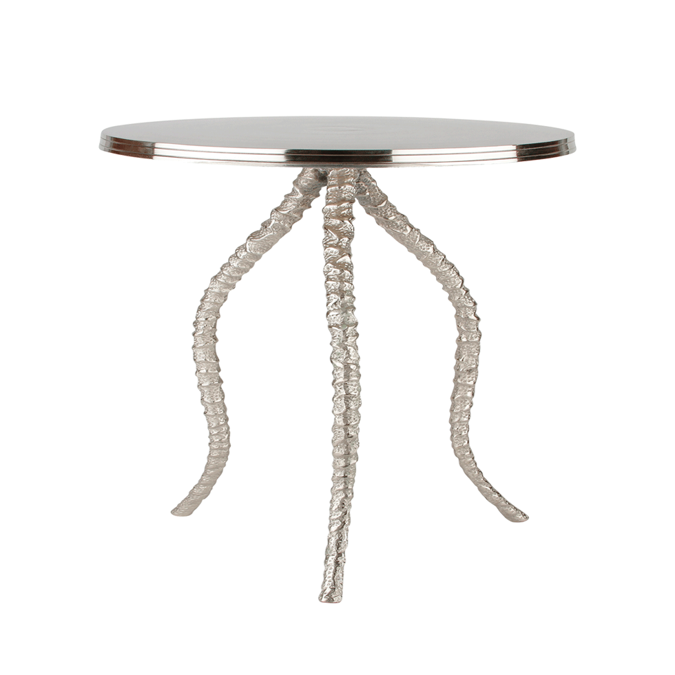 Add versatility and uniqueness to your next lounge with our silver metal Antler Accent Table. Transform your space and make a statement with this chic and functional piece.