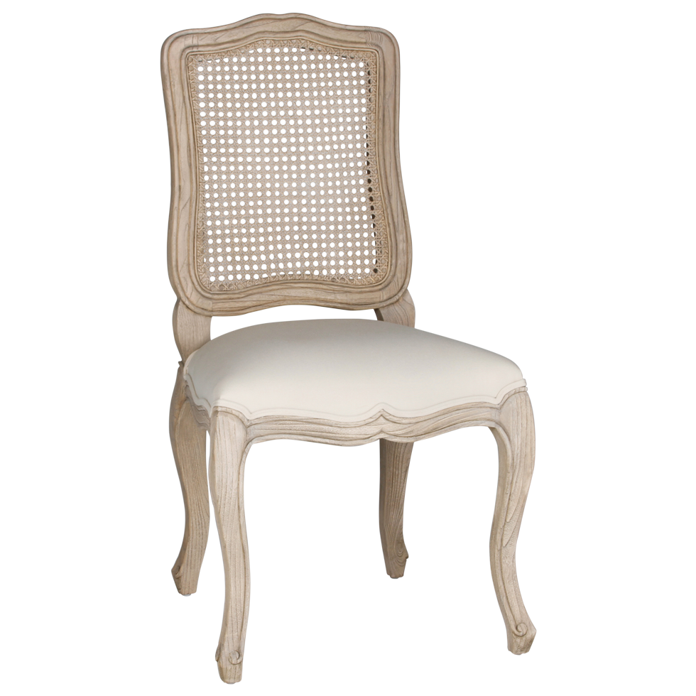 Every exquisite handmade detail of these Dining Chairs is elegant and urbane. Renaissance inspired medallion back is laced with impeccable French cane, adding style and texture. The linen seat is plush and padded for comfort on a solid wood antique finished frame. Dimensions: 21" L x 20 1/4" W x 40" H