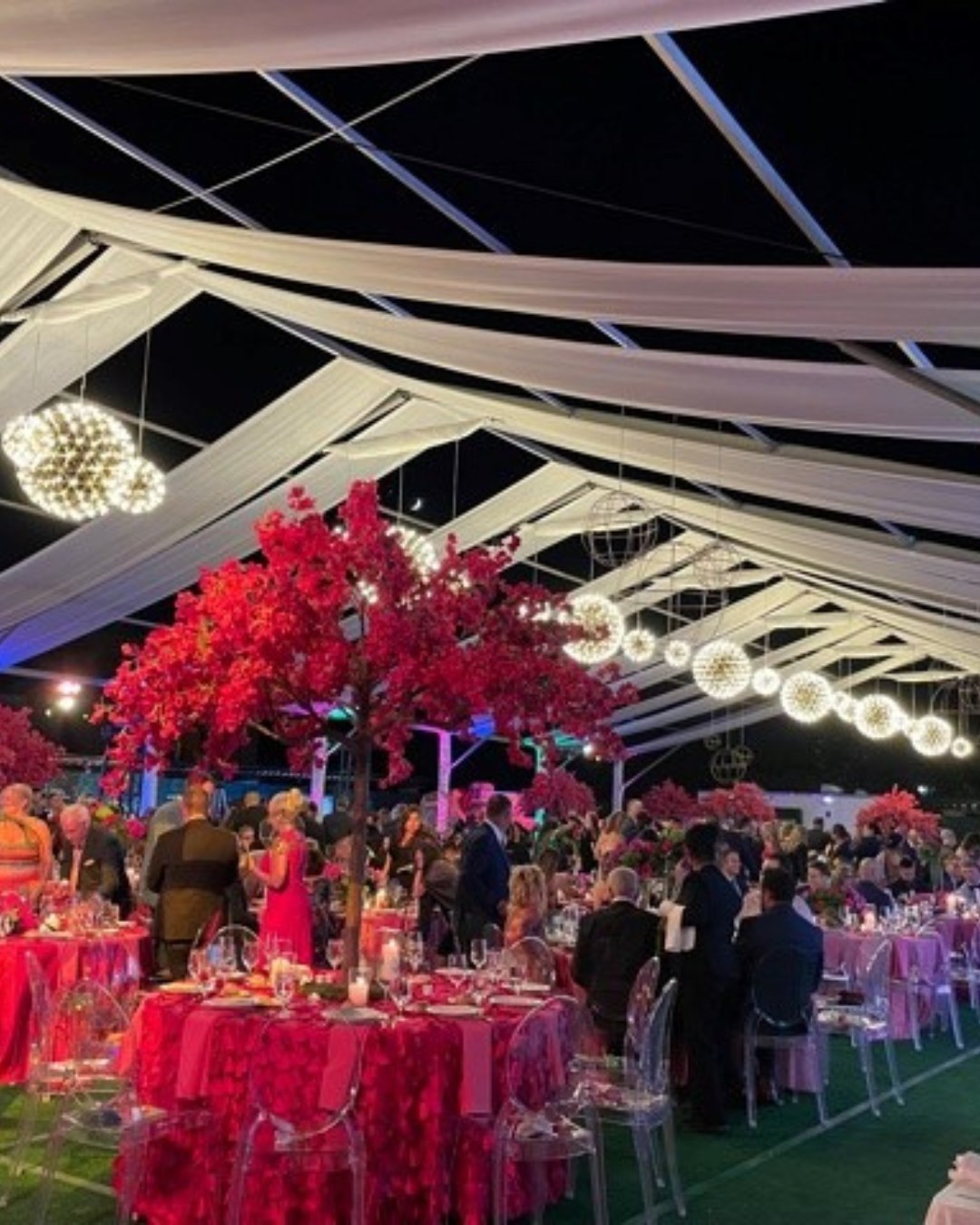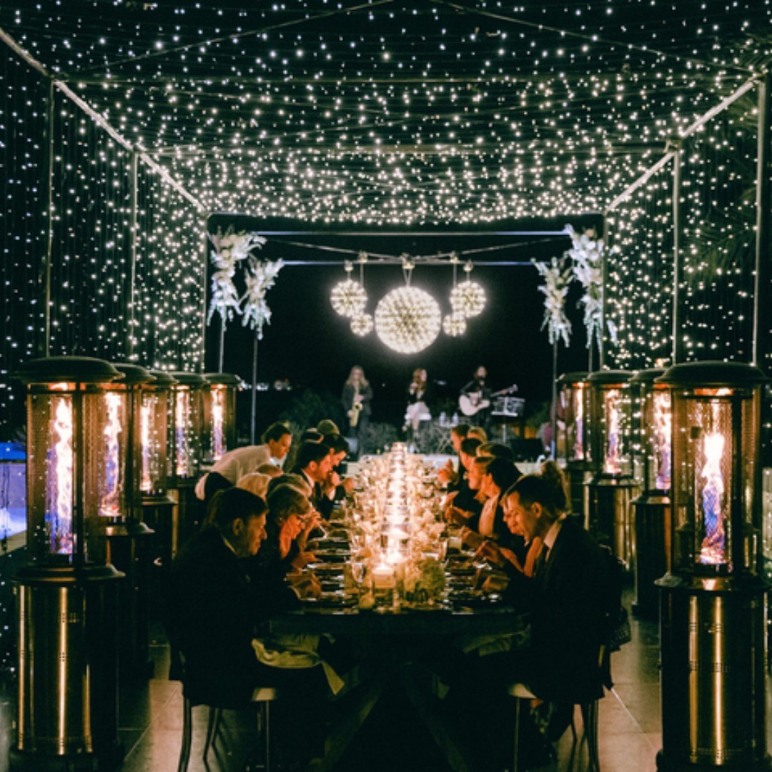 Light up the night with chandeliers that look like fireworks exploding. The Aurora Chandelier comes in 3 sizes featuring a satin nickle round chandelier with LED lights. We suggests hanging several in various lengths for a stunning display.
