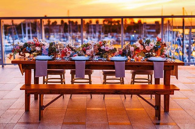Nothing like a colorful tablescape set in front of a gorgeous sunset! · · · Planning: @firstpick Venue: @shadeweddings Florals:...