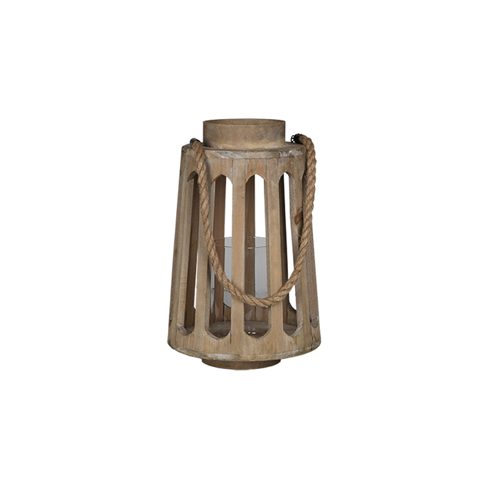 Made of smooth natural timber and a rope handle to give you a chic rustic look. Each lantern accommodates either a taper or pillar candle. Available in two sizes so that you can choose the size that best fits your decor. Surround them in florals, greenery or make them the center of your tablescape or hung from a tree. We recommend using LED candles. Ask your Event Consultant about LED candles available for rent.