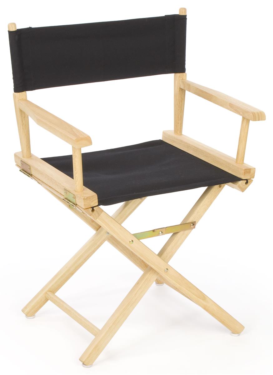 Portable, folding director's chair is ideal for placing at a standard height table.