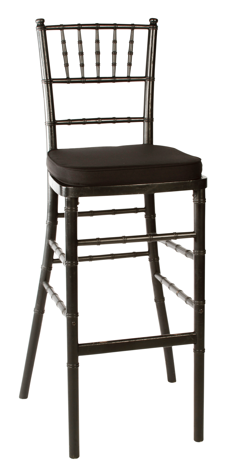 Chiavari bar stools are available in a variety of color choices. Black, Gold or Natural allow you to go from casual to upscale seating options at bar height tables. The Chiavari chair is named for the Italian city where they originated.