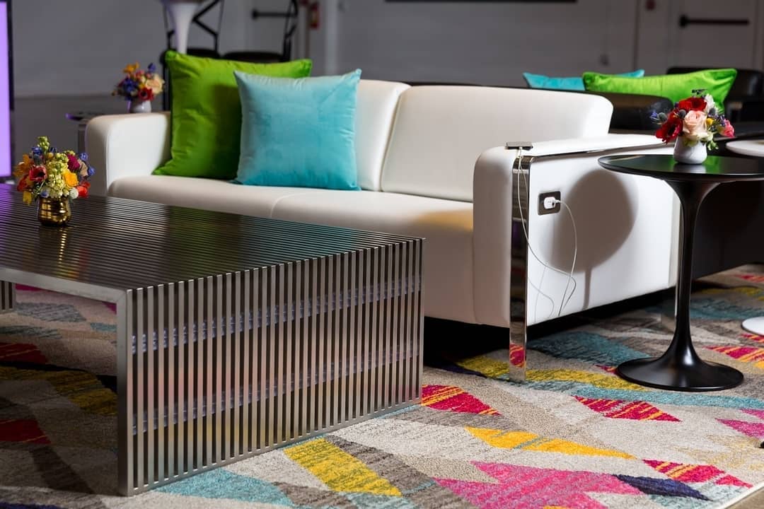 Style and function wrapped in a leatherette fabric and accented with a slim chrome frame. Available in white or black and in a variety of sofas, chairs or ottomans.