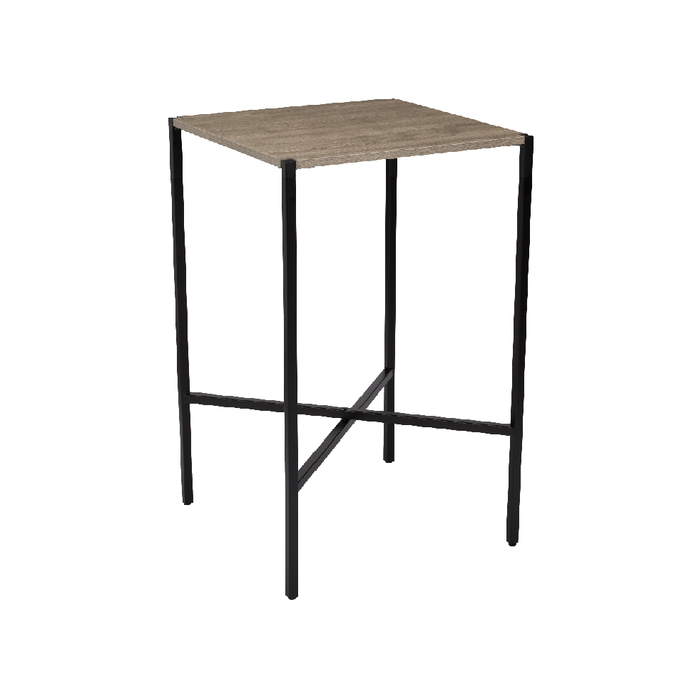 BLACK TRIBECA TALL COCKTAIL TABLE W/ GREY WOOD TOP 27" X 27" X 43" H