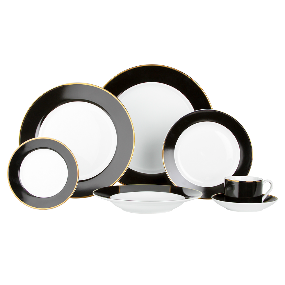 The dynamic Bright Collection is a modern twist on traditional pieces. Crisp, white china is punctuated with bold color bands and accented with gold rims allowing for a multitude of mix and match color combinations. Available in black, green, turquoise, orange, purple and pink. Note: Purple available in dinner and salad plate. Pink and orange available in a salad/dessert plate only.