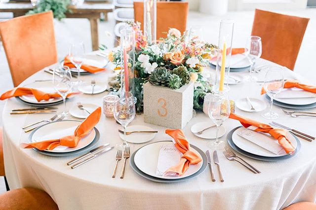 These rust suede chairs by @chameleonchaircollection complement this fall tabletop design perfectly and make us dream about cozy fall dinner gatherings.