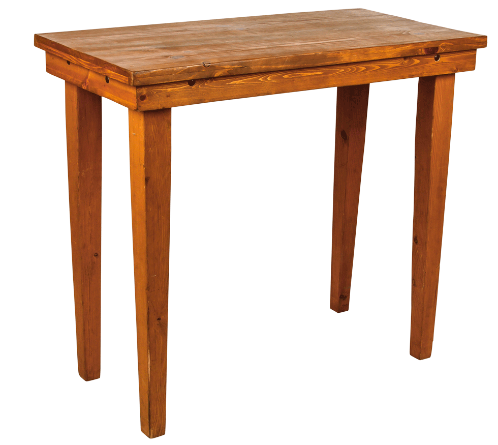 A solid natural oak wood farm table with tapered legs. Available in a variety of sizes and heights.