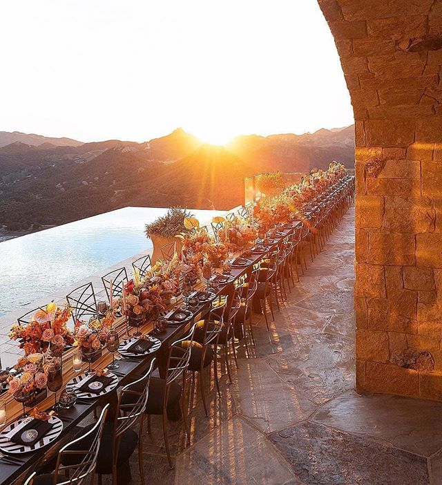 Golden hour is the best hour. This gorgeous setting was created by @triciasmithbrown and @avant_garden \u2728 · · · Venue: @maliburockyoaks
