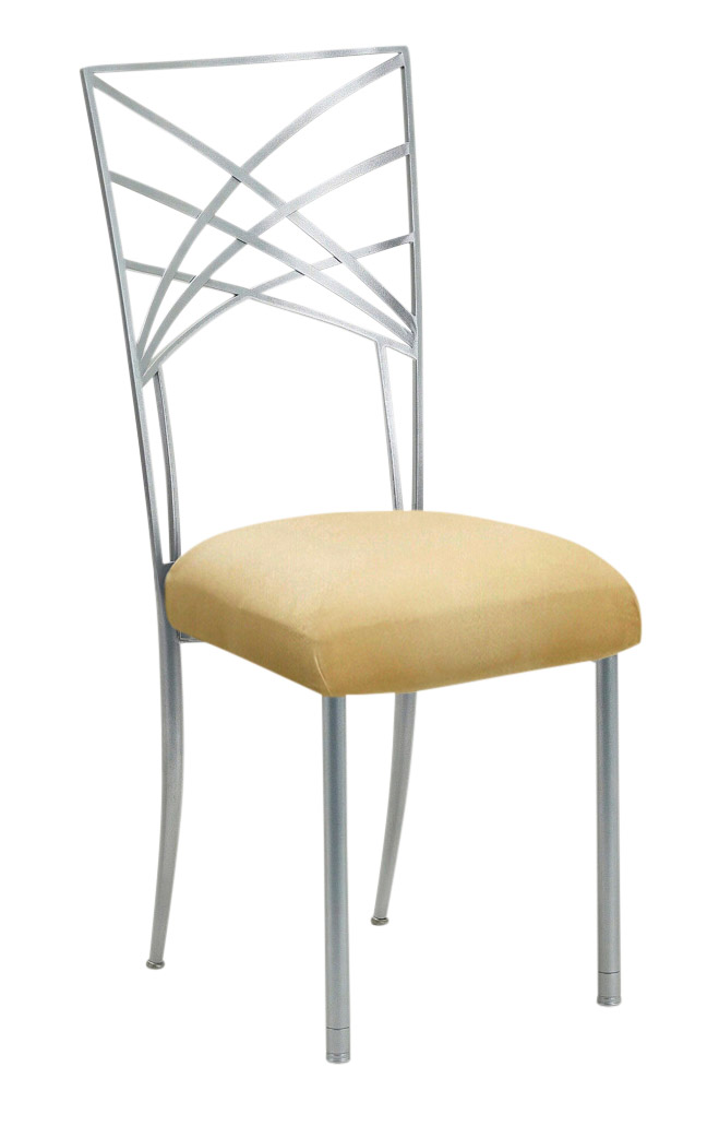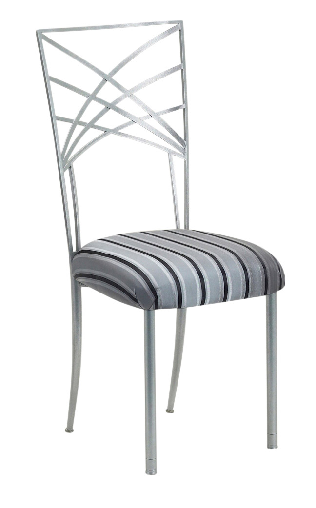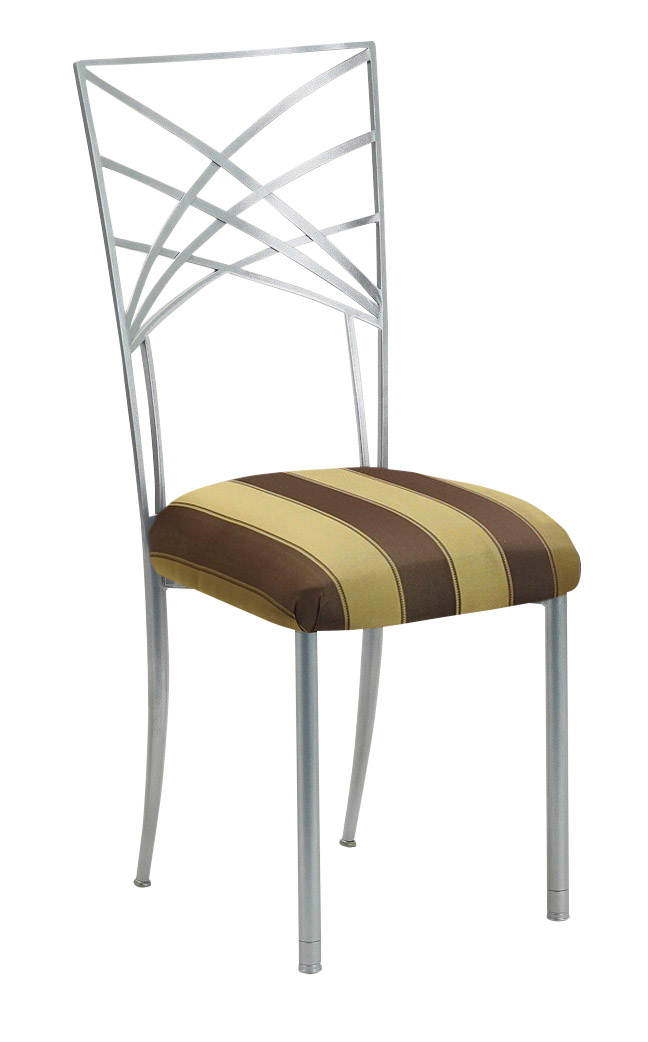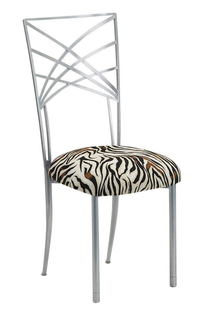 A contemporary, comfortable and versatile chair with unique fanfare design. Chameleon Chairs offer a unique silhouette and detailed backs that are easily recognizable. The FanFare chair is well representative of it’s name which typically consists of a short musical flourish of brass instruments played to introduce someone important. Featuring a plush cushion, fashion forward seat backs and an endless “wardrobe” of seat toppers, jackets, and “jewels” making them one of the most sought-after chairs by event planners, venues and designers. To see a full selection of patterns, colors, and styles visit the Chameleon Chair website. Click to see our Chameleon Chair Price List.