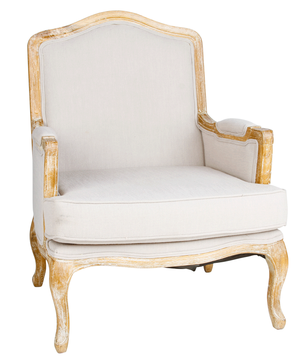 Bring antiqued style to your next event with this charming arm chair. Chair features a classic silhouette and weathered finish. Mix and match with our Banquette of Sofa to create the perfect lounge/enterainment area.