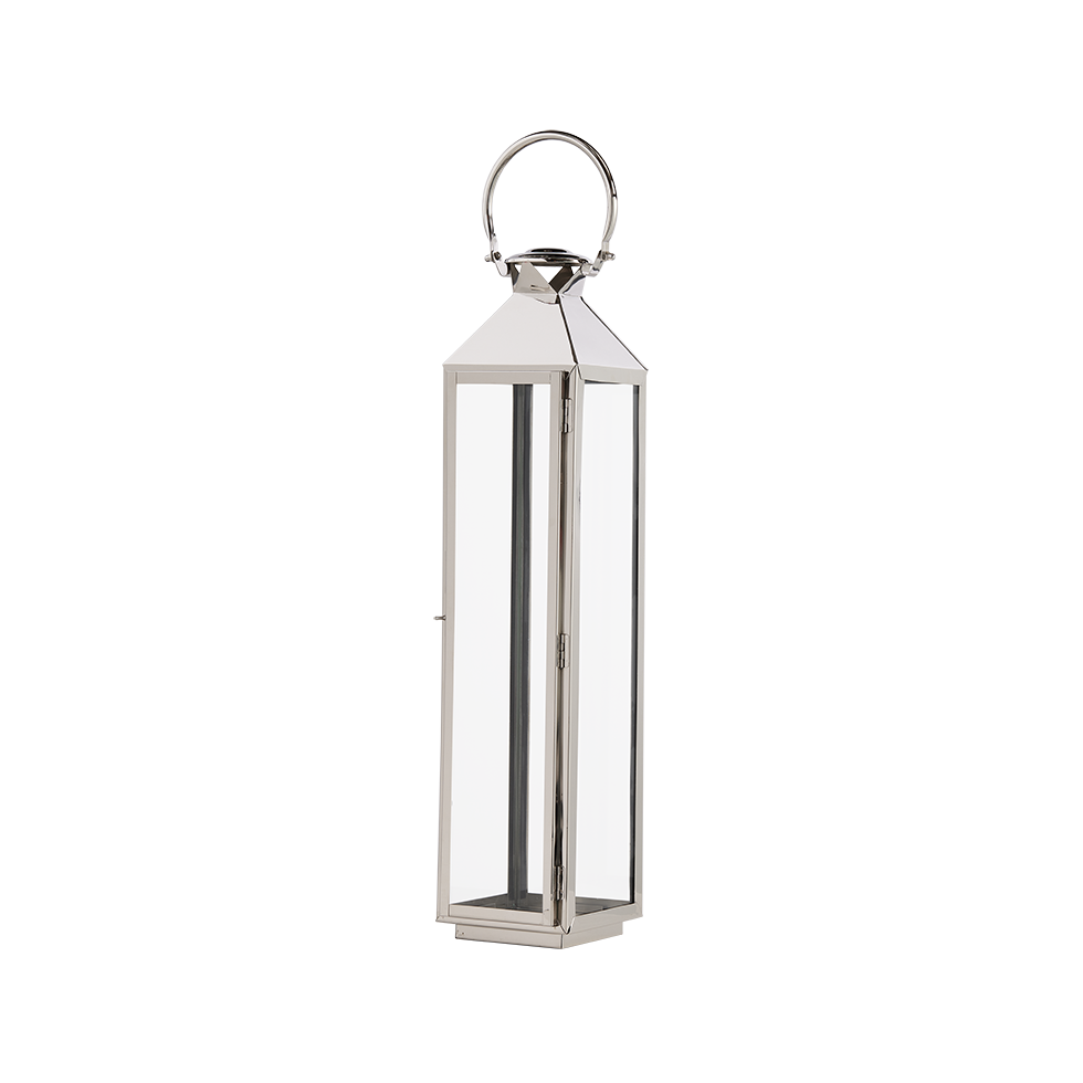 Illuminate your event ambiance with the Copa Floor Lantern. Crafted from sleek silver stainless steel and featuring large glass panels, this traditionally shaped lantern creates a stunning backdrop for candles and additional d?cor. Perfect for entrances, lounge areas, or any space, the Copa is available in small, medium, and large sizes to suit your needs. (Candles not included.)