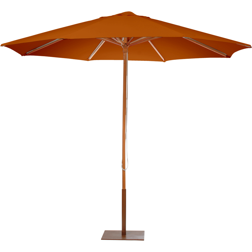 Guests will love relaxing in the shady spot created by this 9' market umbrella. Available in a variety of colors. Includes a heavy weight base. In windy areas, we suggest adding a base weight for stability. Contact customer service for more information on securing umbrellas.