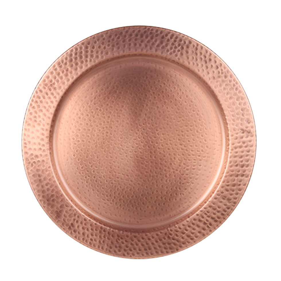 Hammered and polished to a brilliant finish, our copper charger will bring warmth and luster to your table setting.