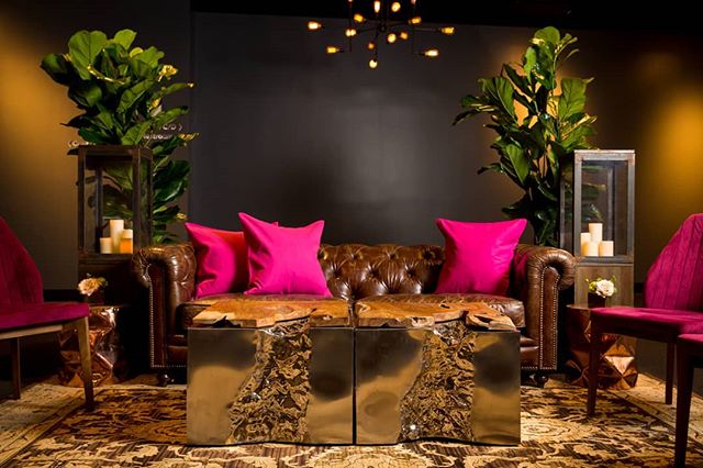 Our wood/stainless coco luxe coffee tables added a touch of glam to these pops of pink., created_time