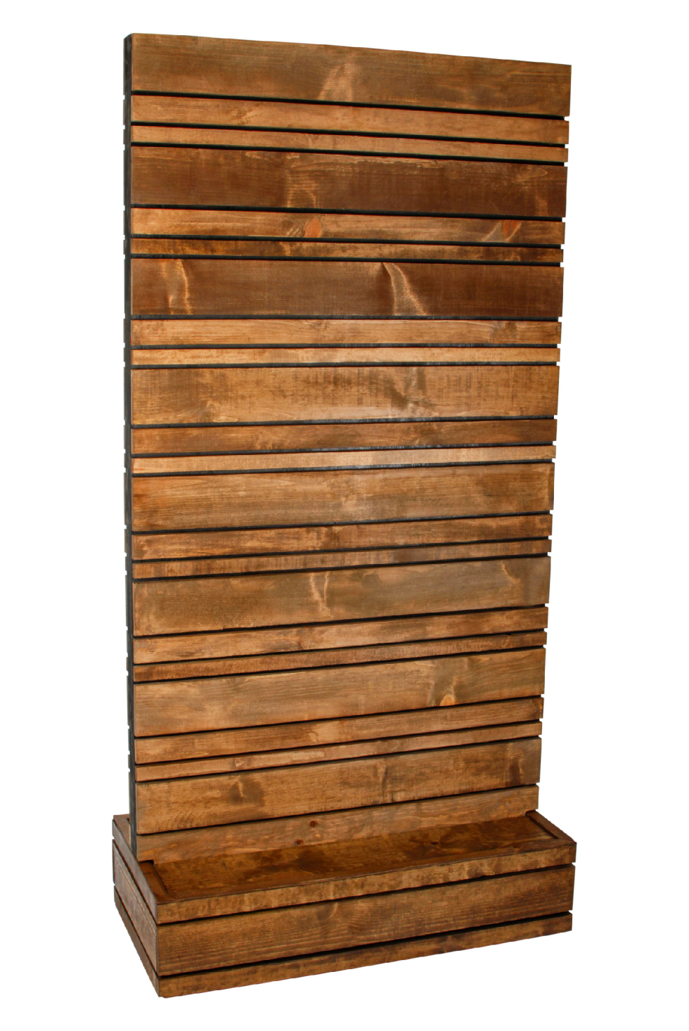 Slat Walls are a wonderful option to divide a room, create a backdrop or "hide" a service area or porta potties. These walls are 8' high, 4' wide with a 2' wide base. Dress them up with lights, use them to direct guests or hang place cards. We recently added some custom shelves to hold stemmed glassware. So many options - what will you do?