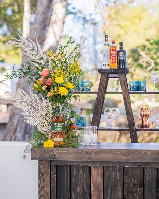 The bar is open - out in the open! Our Mendocino bar and bar back add rustic charm and modern elegance to any event.