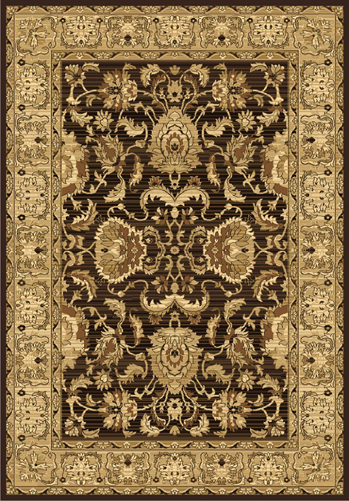 A combination of intricate designs and floral patterns, give this rug a sophisticated and elegant appearance. Primarily brown and cream with other various shades of brown throughout.