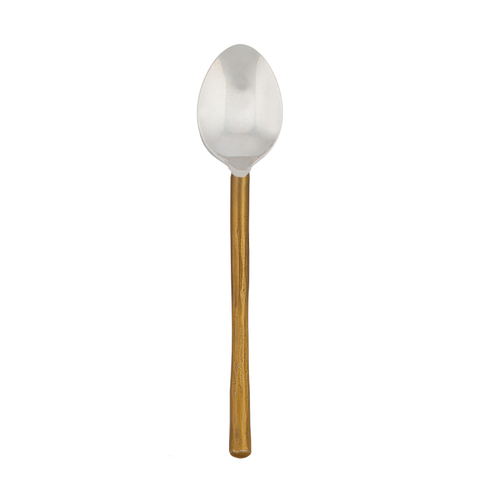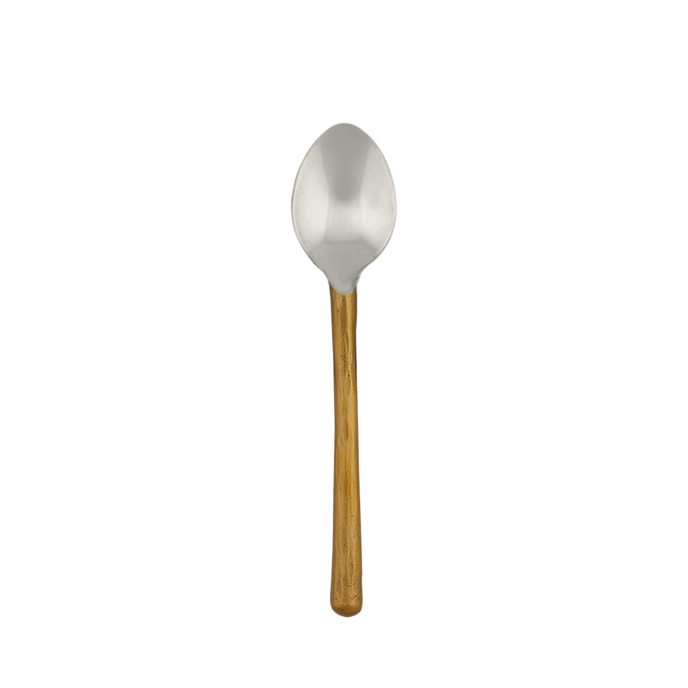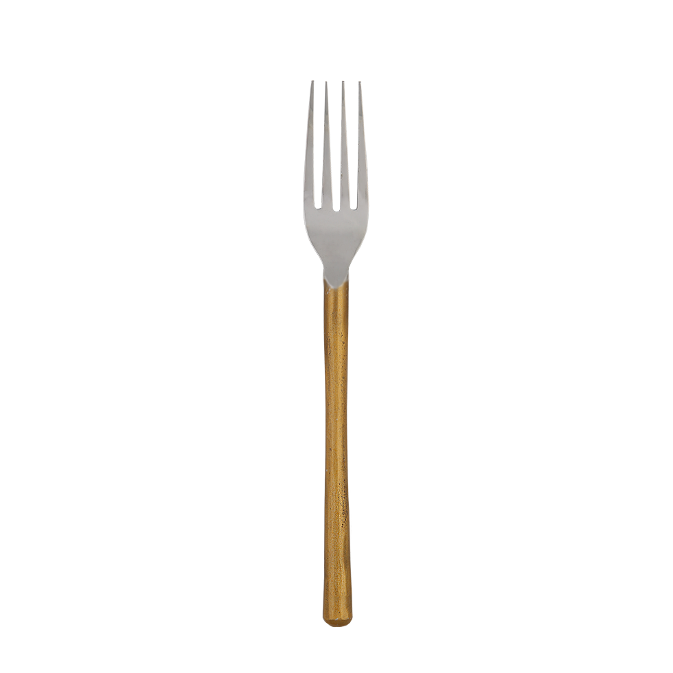 Experience the perfect fusion of modern and vintage aesthetics with our artisanal flatware. Crafted with a two-toned design and a forged antique brass handle, it adds interest to any casual or elegant tabletop.