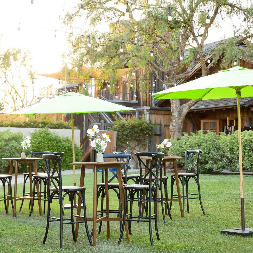 The Erickson cocktail table is ideal for events where multiple bar height tables are needed. It’s warm, walnut finish brings a sophisticated touch that does not need much to dress them up.