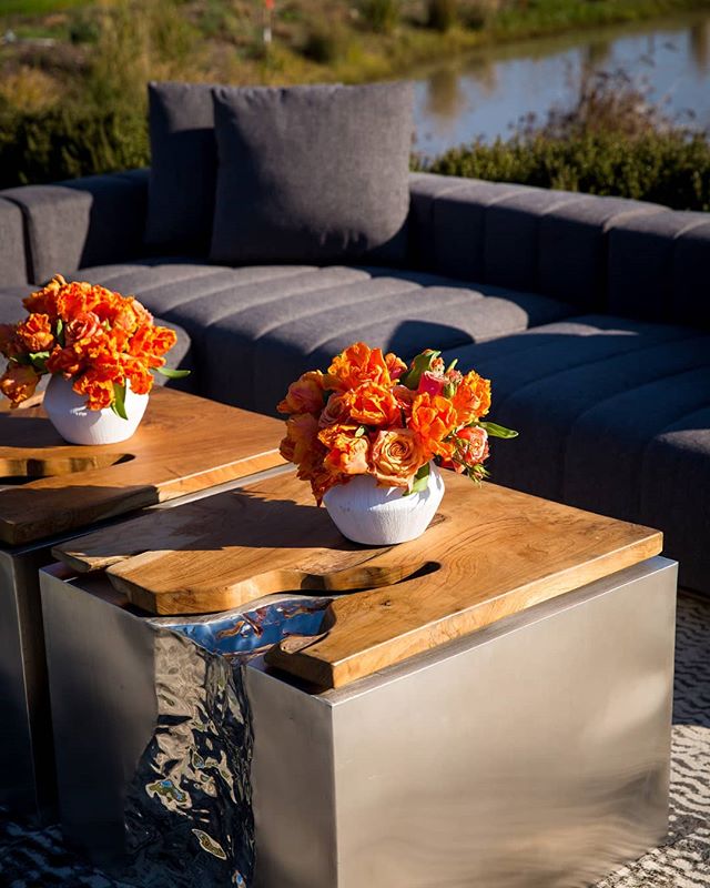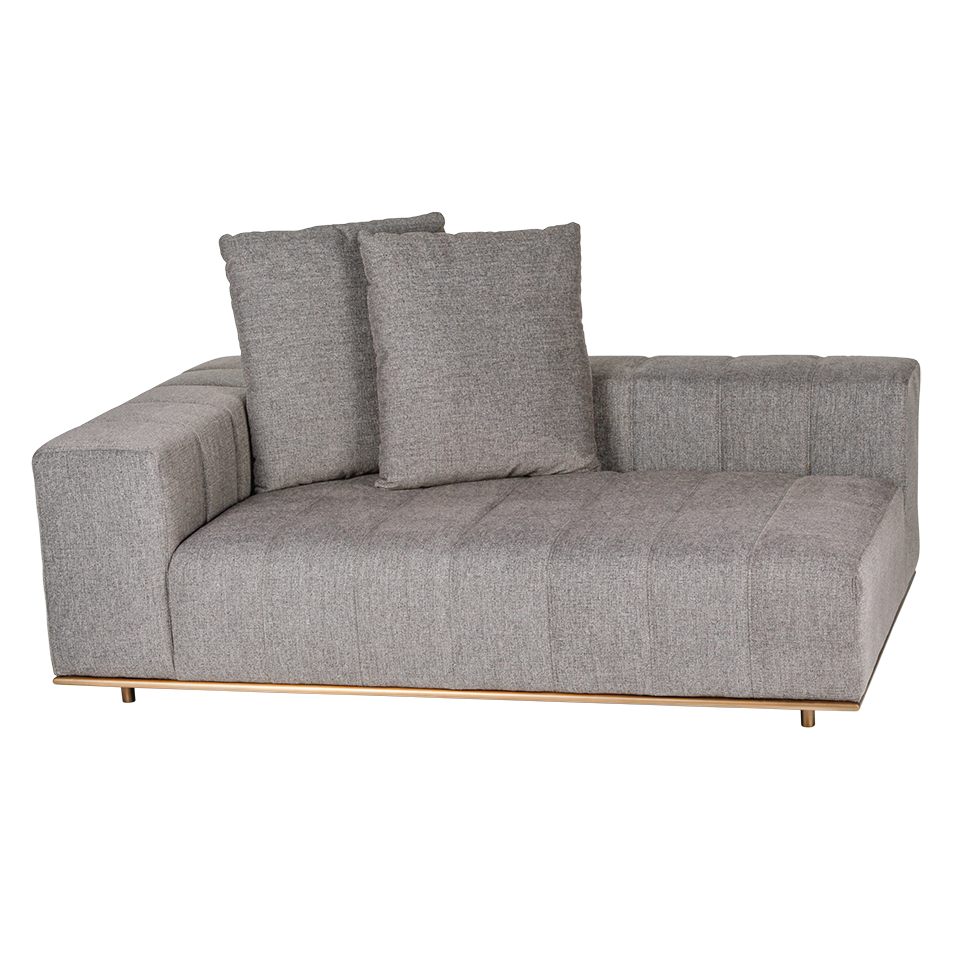 This ultra contemporary Love Seat features a low-profile design with channel tufting along the seat and arms. Square cushions add support along the seat back. Charcoal fabric with a stainless steel frame in an antique brass finish. Mix and match with the Left Facing Love Seat and Sofa to create individual seating areas or one large sectional combined together.