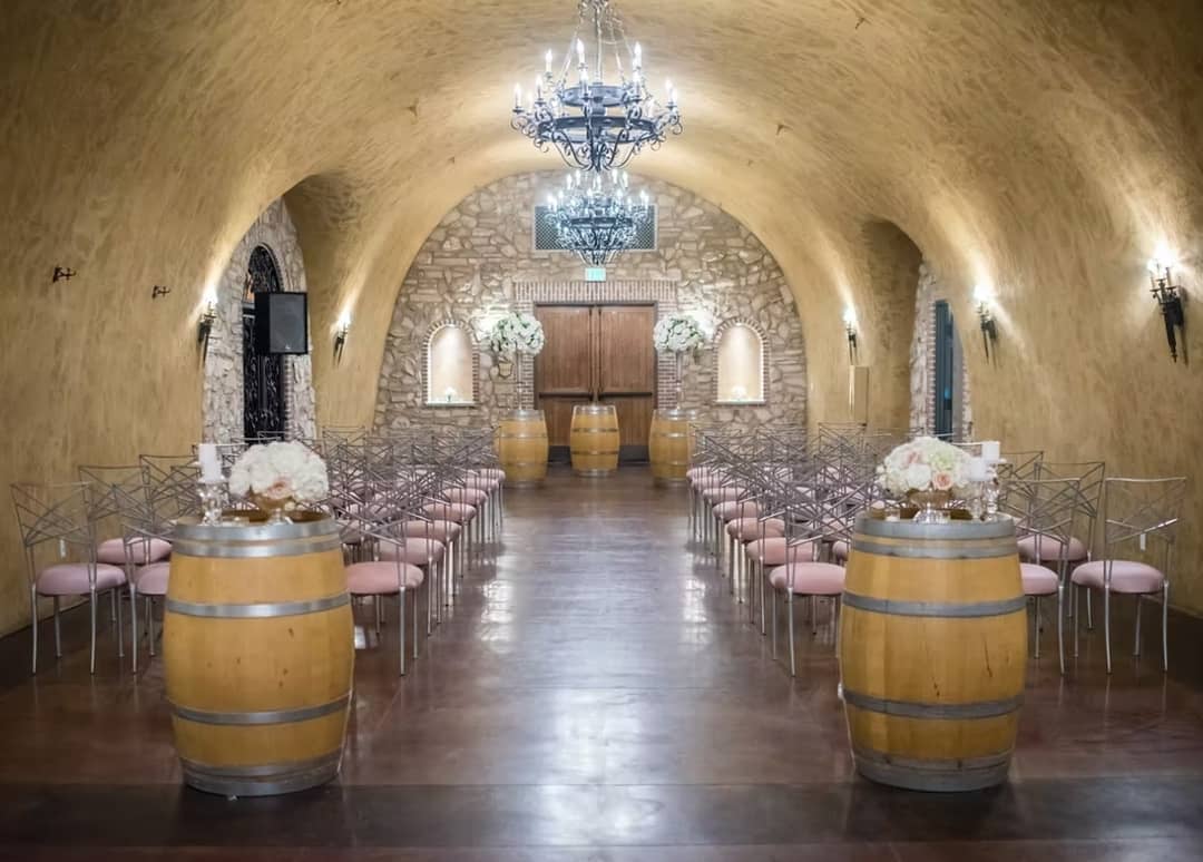 Lace and Willow transformed the & #8203;Estate Cave at Meritage Resort into an elegant and bright space for this ceremony utilizing the Silver Fanfare...