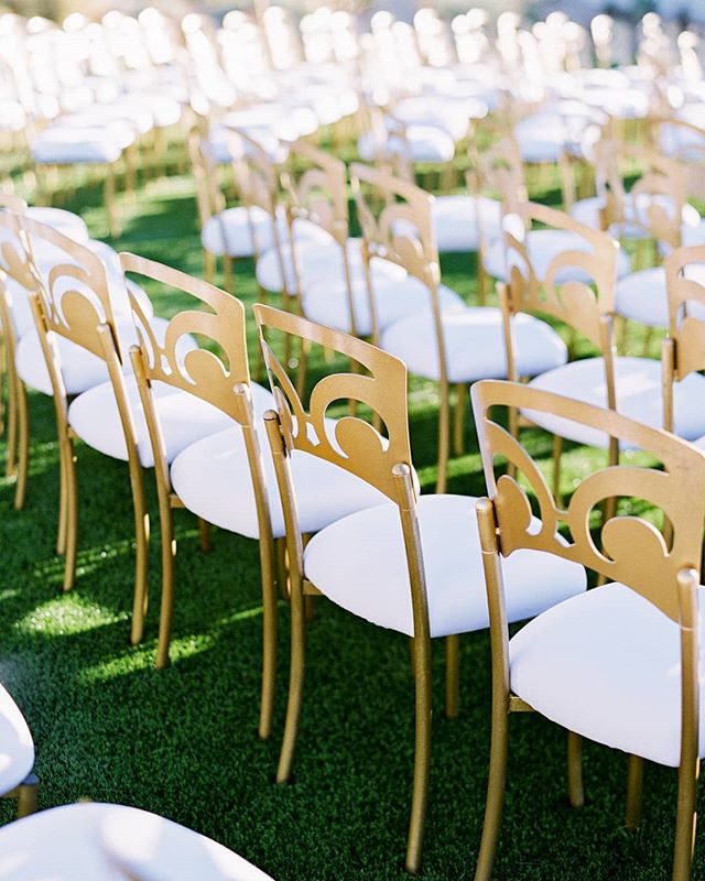 It's all in the details of these Gold Fleur de Lis chairs! They glam up any design! · · ·