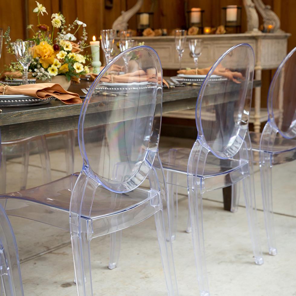 Make a bold statement with our Galaxy Ghost Chair. Beautifully rounded medallion back with a comfortable seat that blends itself into your design for either indoor or outdoor events.