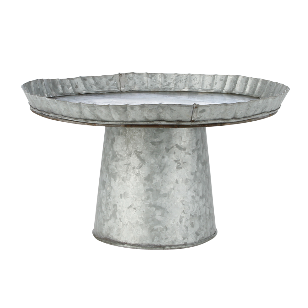 Galvanized footed trays available in 3 sizes. Chic metal trays to showcase small bites, cake or pies.