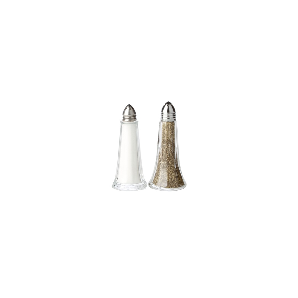 GLASS CHROME TOP SALT & PEPPER SHAKERS