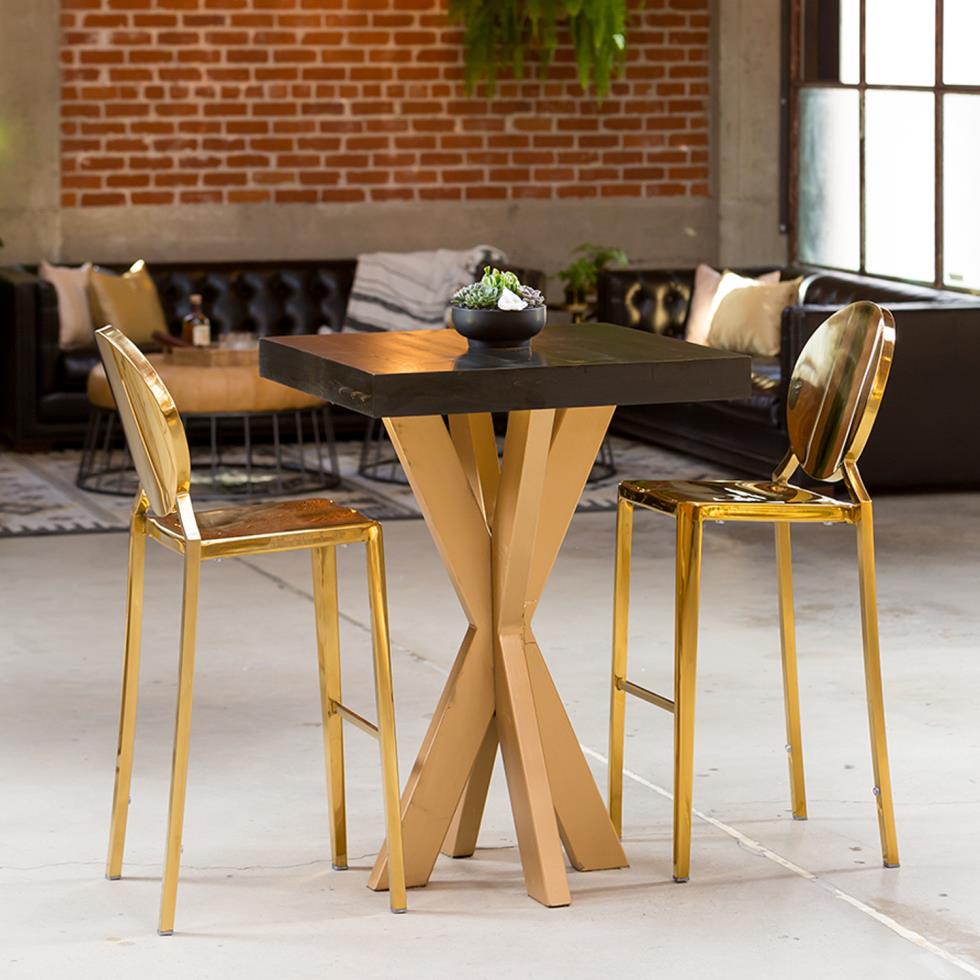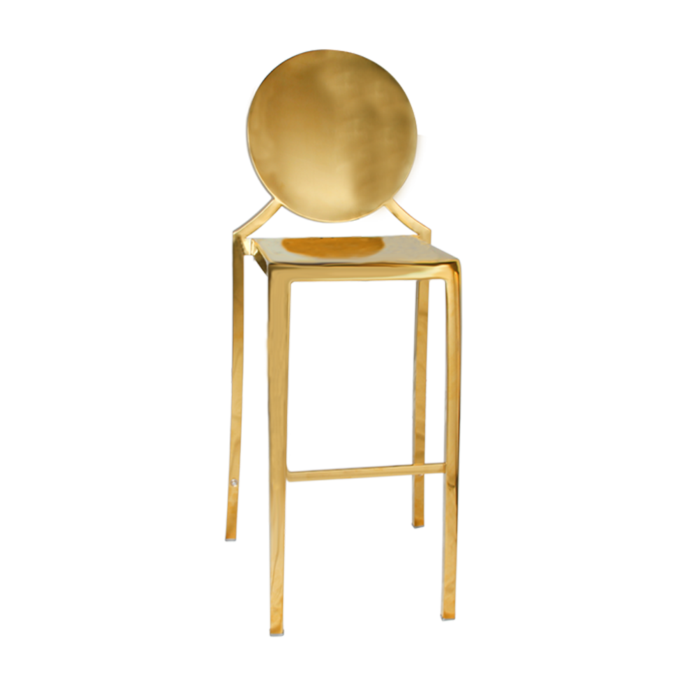 Made of stainless steel with a polished gold finish, the Coco Luxe barstool will shine Bright at your next event! It's rounded back and seamless design...