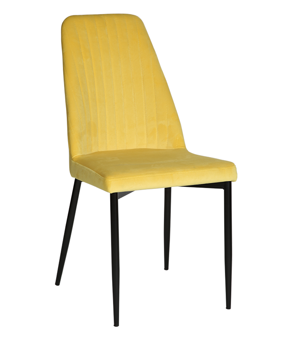 The Coco Luxe Side Chair features slim and striking design with styled seamed back contrasted with simple plush seat. Slim pencil legs in black give this chair an elegant finish.