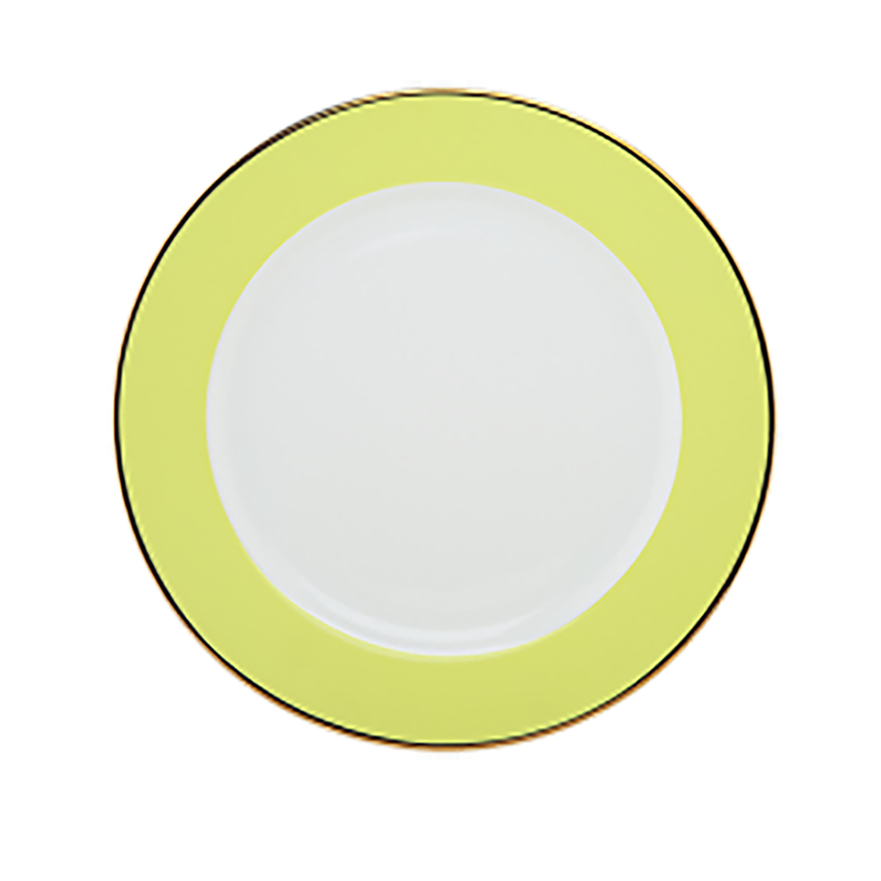 The dynamic Bright Collection is a modern twist on traditional pieces. Crisp, white china is punctuated with bold color bands and accented with gold rims allowing for a multitude of mix and match color combinations. Available in black, green, turqooise, orange, purple and pink. Note: Purple available in dinner and salad plate. Pink and orange available in a salad/dessert plate only.