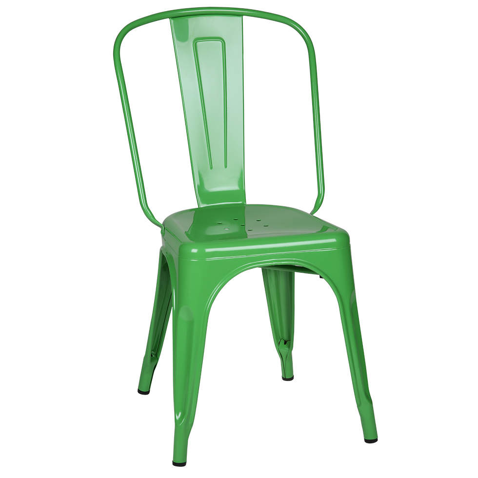 Originally made famous in the quaint bistros of France, these midcentury replicas of vintage style café seating will offer a dose of nostalgia. Featuring a curved back with vertical slat and drain holes in the seat. A cross brace underneath the seat adds extra stability while the Polished Gold finish blends beautifully with rustic or modern design.