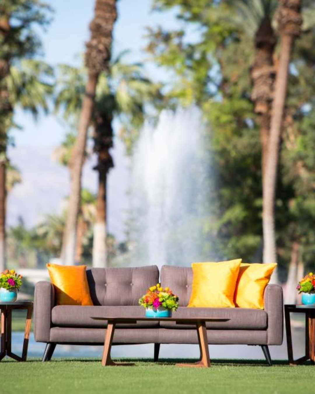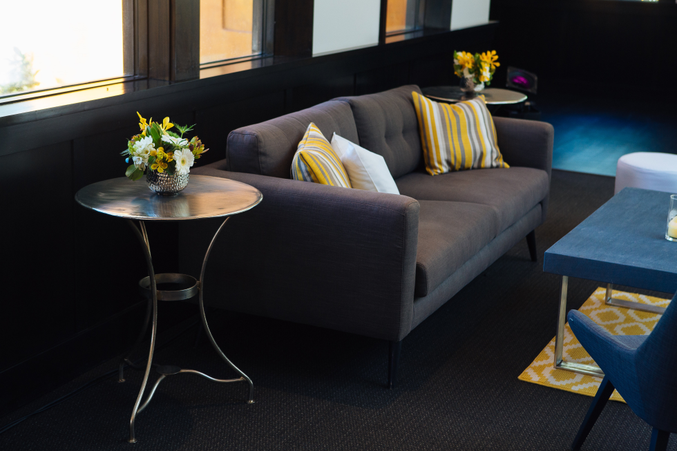 Mid-Century modern sofa is sophisticated and sizable. It's netural color can be dressed up or down and is sure to have a starring role at your next event.