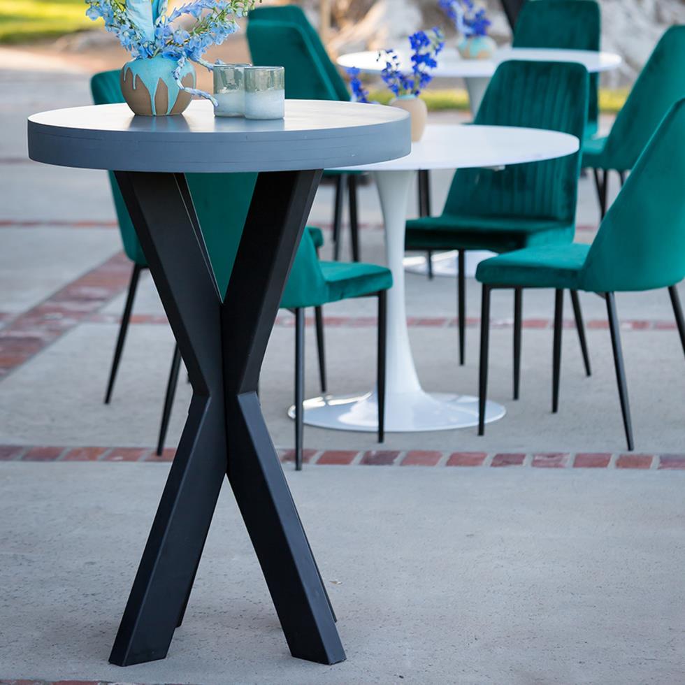 GREY WASH STARBURST W/ BLACK LEGS 30" ROUND TABLE X 42" H
