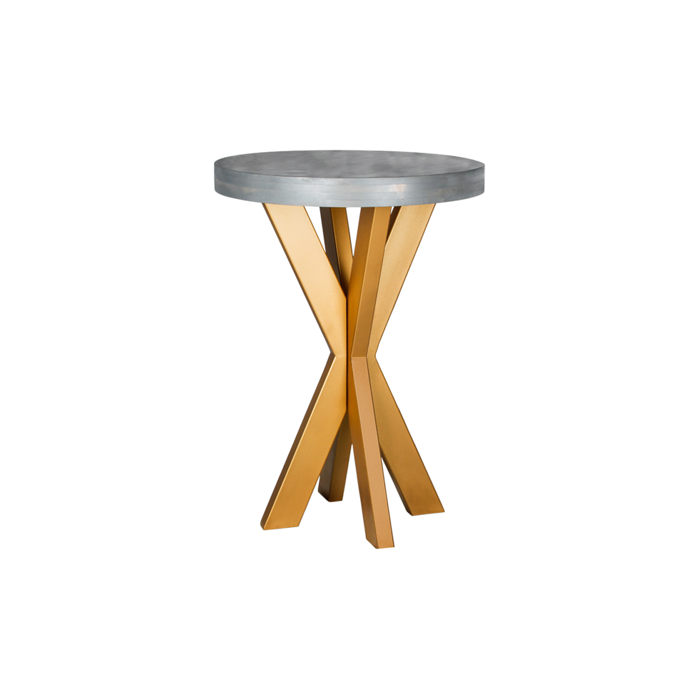 GREY WASH STARBURST W/ BRASS LEGS 30" ROUND TABLE X 42" H