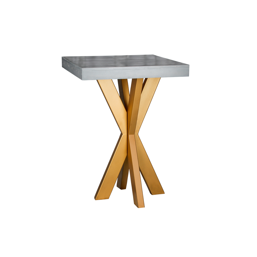 GREY WASH STARBURST W/ BRASS LEGS 30" SQUARE TABLE X 42" H