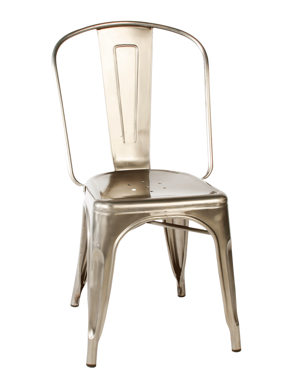 Originally made famous in the quaint bistros of France, these midcentury replicas of vintage style café seating will offer a dose of nostalgia. Chair features a curved back with vertical slat and drain holes in the seat. A cross brace underneath the seat adds extra stability while the stainless steel color blends beautifully with rustic or modern design.