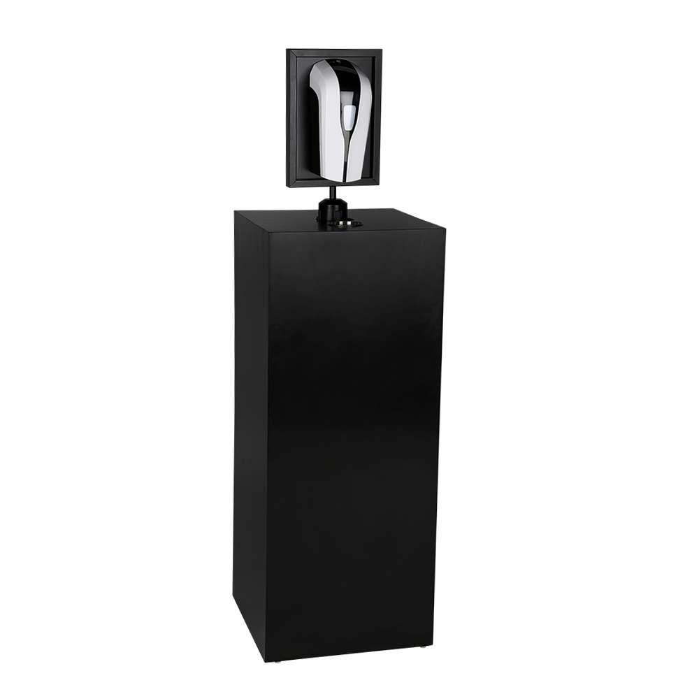Hand sanitizer is mounted to a black display box for easy guest access. Each unit holds 40 ounces of sanitizer. Average pump size .033 ounces. Approximately 1,000 applications per 40 ounce unit. Refill is available at an extra charge.