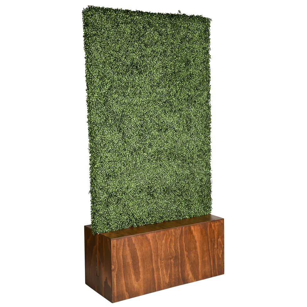 Our Sausalito Hedge Screens are a beautiful way to divide a space, create a room, or block entry to areas. The weighted base with casters is made of wood in a rich walnut color. The hedge slips into the base to make an 8' tall partition. Screens are also available in white, ivory or black and we also stock a black board for personalizing. Custom colors are available upon request at an additional charge. Contact customer service for additional information.