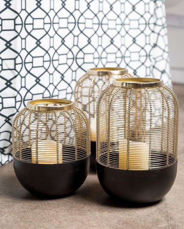 Our new Hive Lantern has a gold wired top and solid black bottom. Tops easily detach to allow your creative side to shine through. LED Candles, LED wire...