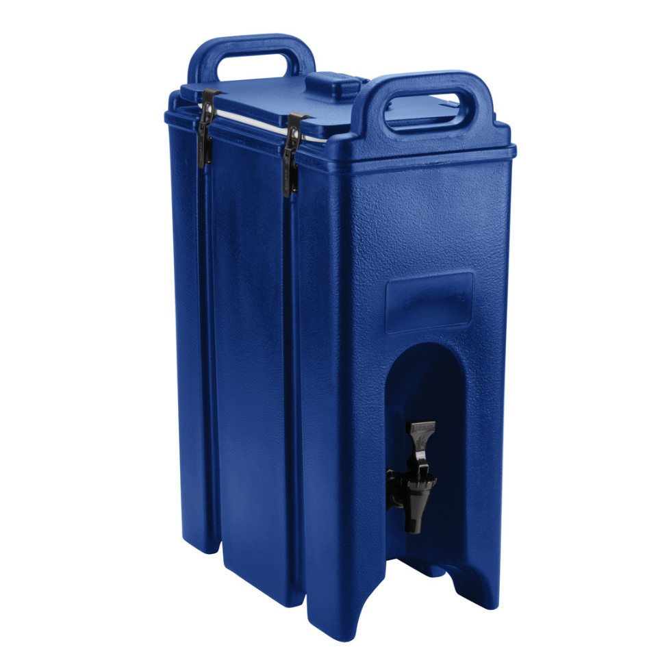 Beverage dispenser has extra thick foam insulation and a reinforced, tight-fitting lid with an o-ring seal for maximum temperature retention. Features a spring action faucet that assures you dripless service. Made of rugged, stain and scratch resistant polyethylene with latches mounted into steel reinforcement plates for reliable filling and emptying.
