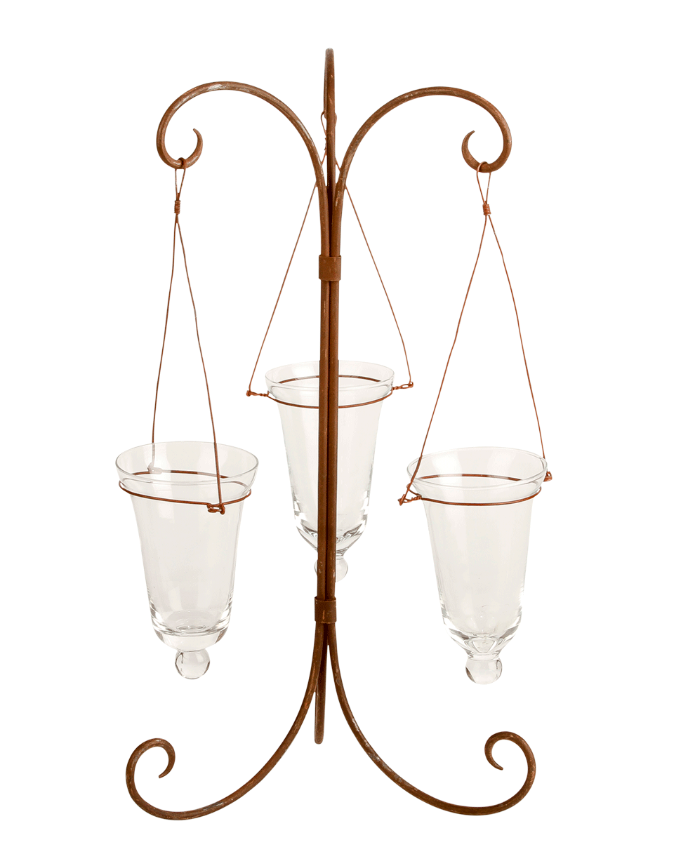 IRON CANDELABRA W/ 3 CLEAR VASES 18"