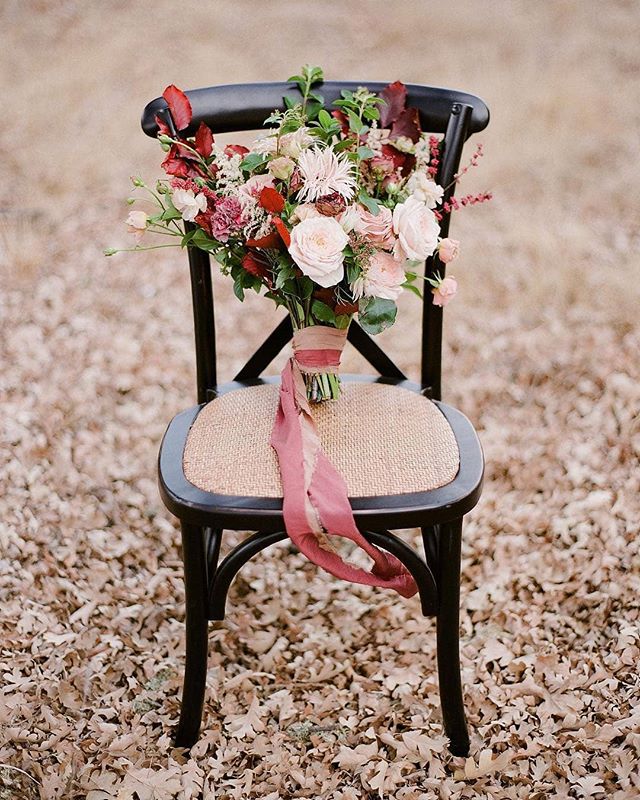 @rockrosefloral added a pop of color to our Black Distressed Bistro Chair right in time for Valentine's Day!